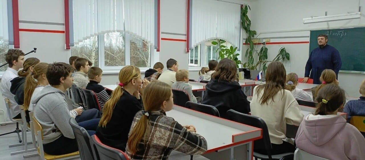 21 ноября 2025 года, в день празднования Собора Архистратига Божия Михаила и прочих Небесных Сил бесплотных, в двух образовательных учреждениях прошли познавательные встречи с дьяконом Свято‑Ильинского храма села Богородское отцом Александром.
