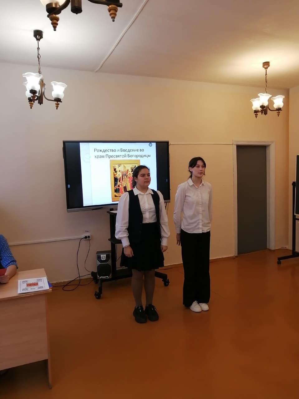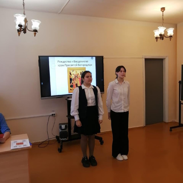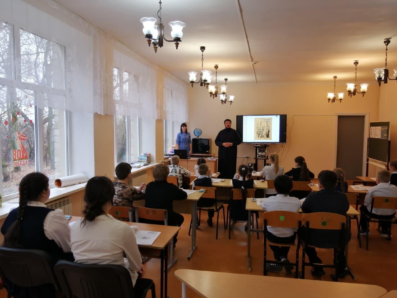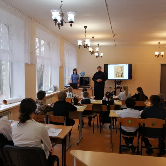 В Тагинской средней общеобразовательной школе Глазуновского района под руководством учителя Е. В. Великановой также в рамках программы духовно‑нравственного воспитания состоялась встреча со священником. Цель — углубить знания о православных праздниках, приобщить к традициям Православной Церкви и сформировать осмысленное отношение к духовно‑нравственным ценностям. Школьники делились знаниями по курсу «Иконостас», обсуждали двунадесятые праздники (в том числе Рождество и Введение во храм Богородицы) и роль иконостаса в храме. Занятие прошло в формате живого диалога с наглядными материалами (тетради и макет программы «Вертоград»); учащиеся задавали вопросы об образах, истории праздников и иконографических традициях.