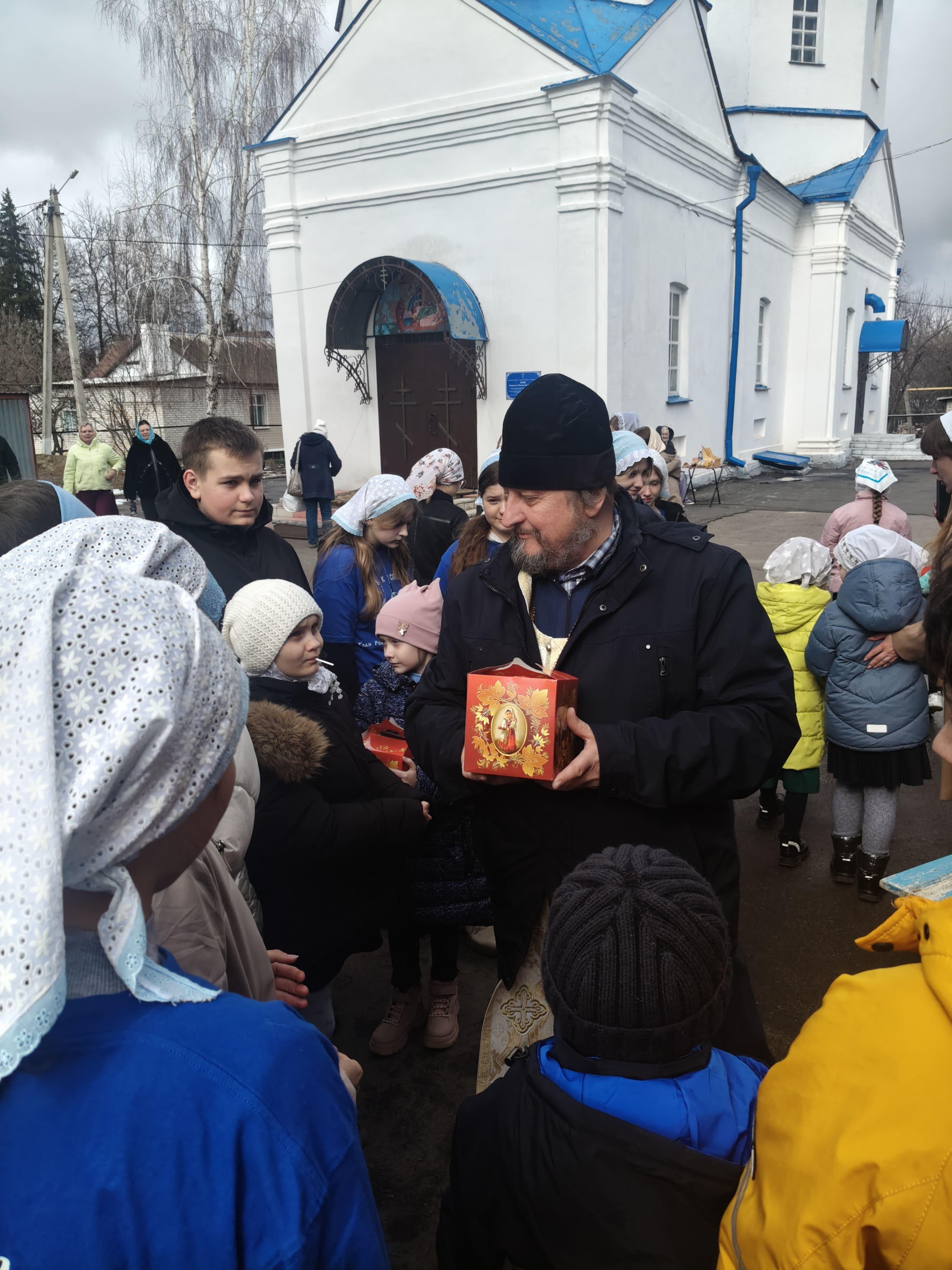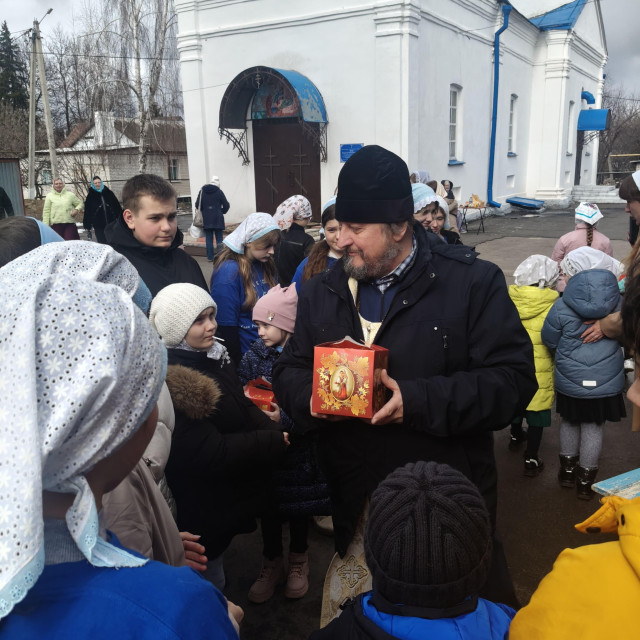 Во время встречи батюшка обратился к детям с напутственным словом, напомнив о глубоком духовном смысле праздника — победе жизни над смертью, любви над грехом. Он пожелал ребятам расти в вере, сохранять в сердцах пасхальную радость и делиться ею с окружающими, быть добрыми, отзывчивыми и внимательными к близким.